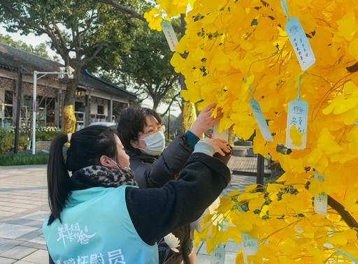 2024年冬至期间,上海市民在滨海古园工作人员的指引下,通过悬挂“思念卡片”的方式缅怀故人。 供图/上海市民政局
